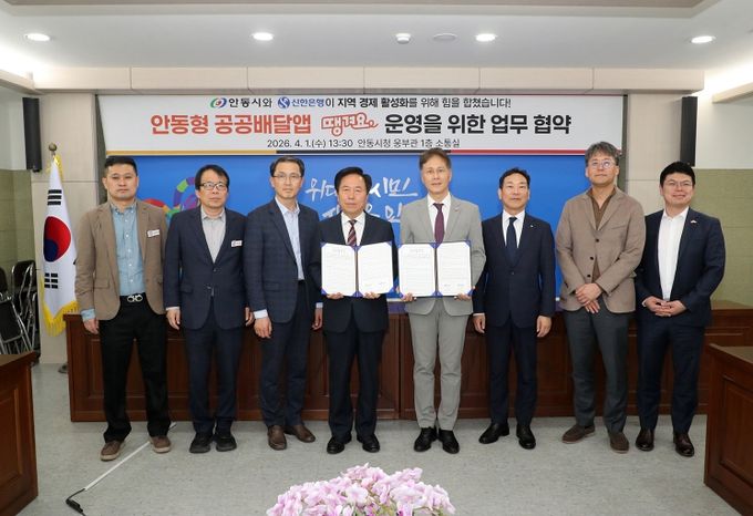 [경남도민뉴스=오창경 기자] 안동시는 신한은행과 4월 1일 '안동형 공공배달앱 운영을 위한 업무 협약'을 체결하고, 공공 배달앱 시장 1위 앱인 ‘땡겨요’를 안동형 공공 배달앱으로 도입한다고 밝혔다.