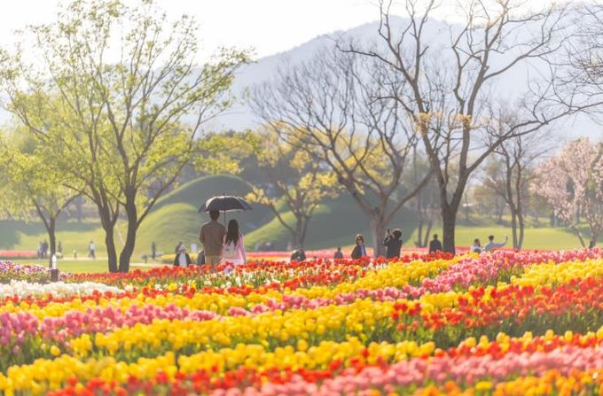 국가정원 전역에 150만 송이의 튤립이 일제히 피어나며 장관을 이루고 있다.