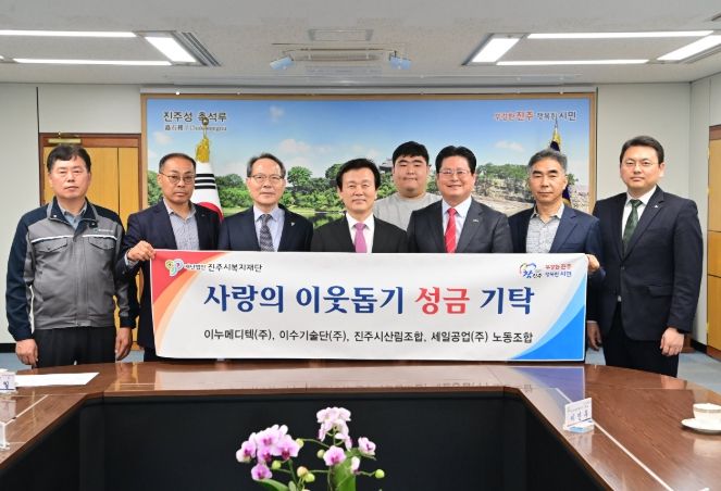 이번 기탁식에서 이누메디텍㈜(대표 이인우)에서 성금 2,000만 원, 이수기술단㈜(대표 황국주)에서 성금 2,000만 원, 진주시산림조합(조합장 정덕교)에서 성금 1,000만 원, 세일공업㈜노동조합(위원장 조경옥)에서 성금 200만 원을 지역사회 어려운 이웃을 돕기 위해 기탁했다.