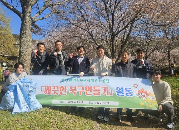 [경남도민뉴스=최재경 기자] 울산광역시 북구 시설관리공단(이사장 임정식)은 4월 8일 북구 관내 화동못 일원 및 공단 시설 외곽 등에서 '깨끗한 북구만들기' 활동을 전개했다. 이번 환경 정화 활동에는 관리직 임직원 9명이 직접 참여했다.