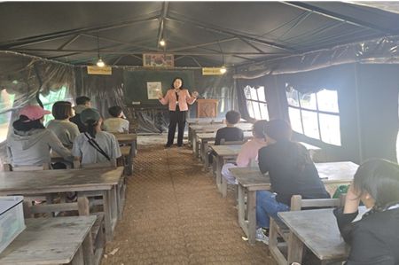 '피란학교 천막교실'은 임시수도기념관 야외 천막교실에서 진행하는 체험 수업으로, 피란수도 부산과 관련된 다양한 프로그램을 제공한다.