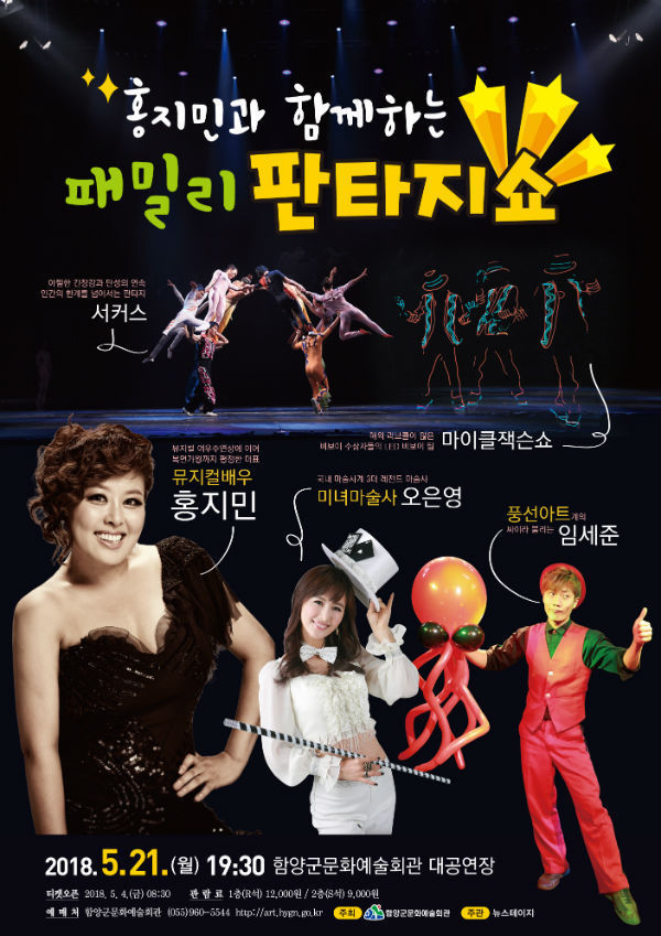 (함양/최병일) = 함양군은 가정의 달을 맞이하여 오는 5월 21일 오후 7시 30분 문화예술회관 대공연장에서 온 가족이 공감하고 즐길 수 있는 공연‘홍지민과 함께하는 패밀리 판타지쇼’를 개최한다고 27일 밝혔다.