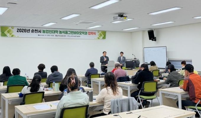 [경남도민뉴스=최인태 기자] 순천시는 지난 9일 '2026년 순천시 농업인대학 농식품 그린바이오학과' 개강식을 시작으로 본격적인 교육 운영에 들어갔다고 밝혔다.