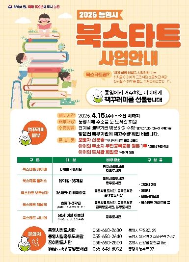 [경남도민뉴스=김부경 기자] 통영시 통영시립도서관은 시민들이 생애 초기부터 책을 가까이하며 올바른 독서 습관을 형성할 수 있도록 돕는 사회적 독서문화운동인 ‘2026 북스타트 사업’을 추진한다고 14일 밝혔다.