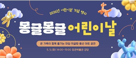 [경남도민뉴스=신석주 기자] 부산시립박물관 소속 정관박물관은 오는 5월 5일 '제104회 어린이날'을 맞아 온 가족이 함께 즐길 수 있는 기념 행사 '몽글몽글 어린이날'을 개최한다고 밝혔다.