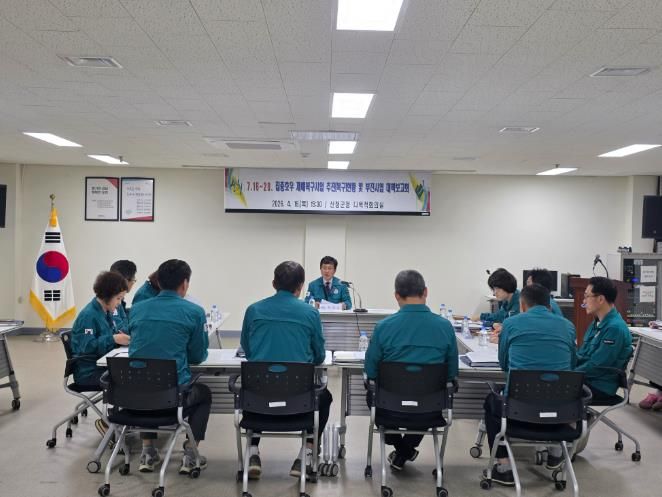 성흥택 부군수 주재로 열린 이번 보고회는 지역 내 재해복구 관련 현안 및 여름철 자연재난 사전 대비 태세 점검을 위해 마련됐다.