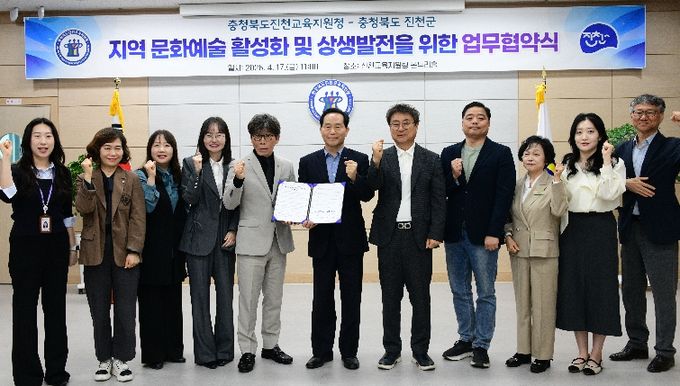 [경남도민뉴스=박만수 기자] 충청북도진천교육지원청과 진천군은 4월 17일 지역 문화예술 활성화 및 상생발전을 위한 업무협약(MOU)을 체결했다.