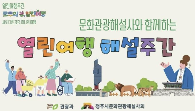 이와 함께 열린여행 해설주간 동안에는 미취학 아동과 장애인뿐 아니라 동반 1인까지 문화관광해설사가 동행하는 청주시티투어를 무료로 이용할 수 있어 보다 편리하고 안전한 청주여행을 지원하고 있다.
