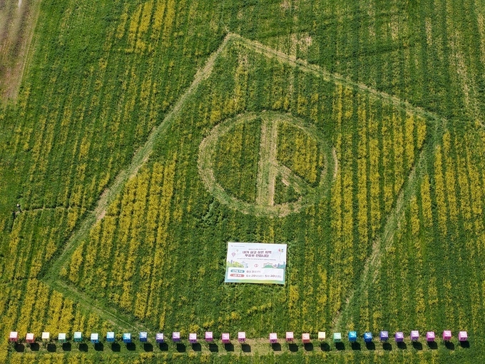 [경남도민뉴스=구인애 기자] 경상남도선거관리위원회는 2026. 4. 20. 경상남도 창녕군 남지읍에서 제9회 전국동시지방선거 투표 참여 독려를 위하여 11,600㎡ 전국 최대 규모의 대형 기표모양 유채꽃밭을 조성하여 퍼포먼스를 실시했다.