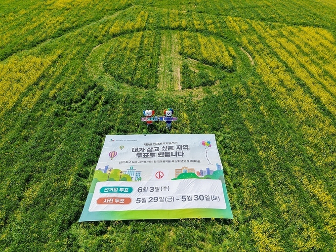 꽃으로 찍는 한 표, 유채꽃밭 투표 참여 퍼포먼스 실시