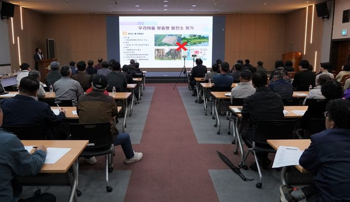 이날 설명회에서는 사업 구조와 참여 요건, 신청 절차, 지원 내용, 수익 배분 방식 등을 중점적으로 안내하고 성공 사례를 통해 태양광 발전 수익이 주민 소득과 공동체 복지로 이어지는 모델을 제시했다.