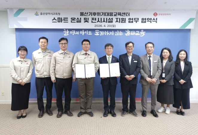 이날 협약식에는 천창수 교육감과 김철중 롯데정밀화학 생산본부장을 비롯한 관계자 9명이 참석해 지원방안을 공유했다. 두 기관은 기후 위기 대응 교육을 활성화하는 데 긴밀히 협력하기로 뜻을 모았다.