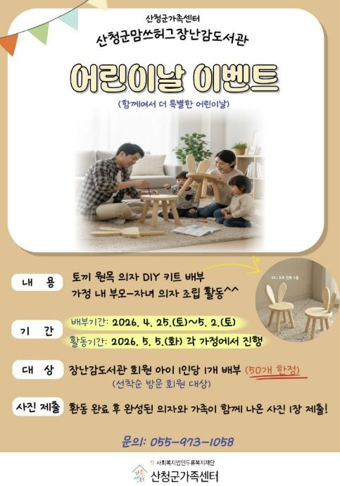 [경남도민뉴스=김태수 기자] 산청군가족센터는 어린이날을 맞아 ‘함께여서 더 특별한 어린이날’사업을 추진한다고 21일 밝혔다.