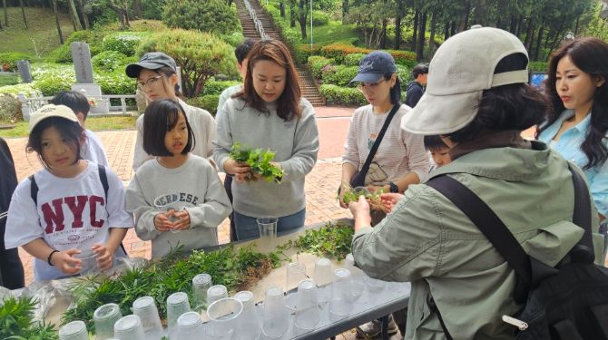 참여자들은 남산공원 산책로를 따라 환경정화 활동을 펼치며 자연스럽게 소통하는 시간을 가졌고, 수경식물 기르기 체험을 통해 일상 속 탄소중립 실천 방안도 함께 공유했다.