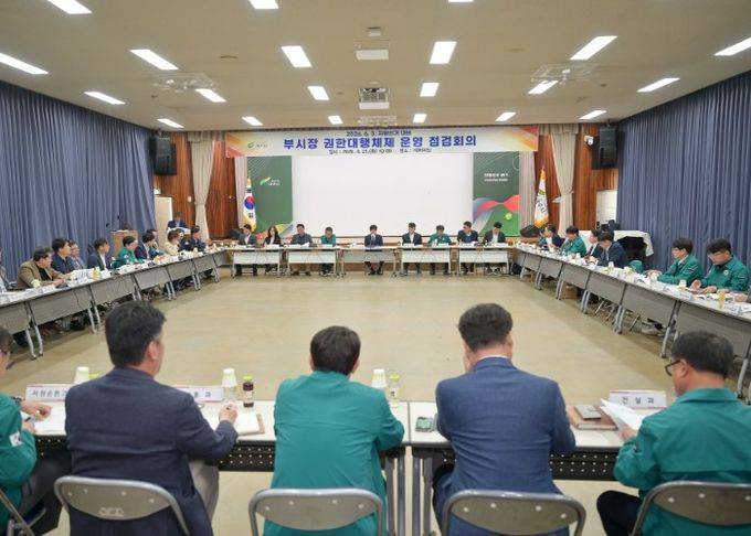 [경남도민뉴스=김동규 기자] 여주시는 지난 4월 21일 시청 4층 대회의실에서 김광덕 부시장 주재로 ‘부시장 권한대행체제 운영 점검회의’를 개최했다. 이번 회의는 20일 여주시장이 제9회 전국동시지방선거 시장예비후보로 등록함에 따라 부시장 권한대행 체제 전환으로 시정의 안정과 업무의 연속성을 유지하고 행정 공백을 최소화하고자 마련했다.