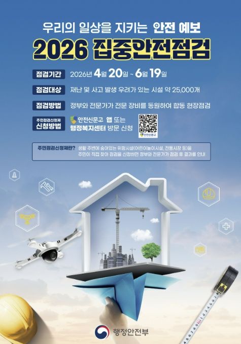 [경남도민뉴스=박만수 기자] 옥천군은 각종 재난과 안전사고를 예방하기 위해 4월 20일부터 6월 19일까지 2개월간 지역 내 주요 시설 80개소를 대상으로 ‘2026년 집중안전점검’을 실시한다고 밝혔다.