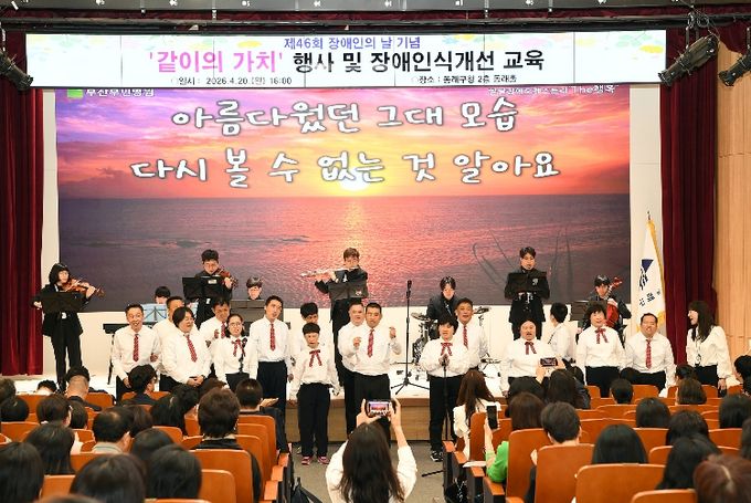 이어 진행된 장애인식개선 교육은 부산장애인직업적응훈련센터 극단 ‘하이파이브 친구들’이 참여해 뮤지컬 형식으로 진행됐다. 공연은 남들보다 더 많은 노력과 연습으로 무대를 완성해 가는 과정을 담아내며, 장애에 대한 편견을 넘어 가능성과 가치를 되새기는 메시지를 전달해 관객들의 큰 호응을 얻었다.
