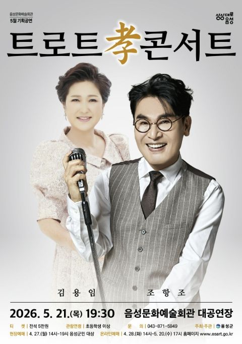 [경남도민뉴스=박만수 기자] 음성군은 사랑과 감사의 달 5월을 맞아 따뜻한 위로와 즐거움을 선사할 '트로트 孝 콘서트'를 오는 5월 21일 오후 7시 30분 음성문화예술회관에서 개최한다.
