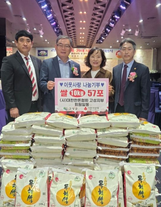[경남도민뉴스=김태수 기자] (사)대한한돈협회 고성지부(지부장 한창주)는 22일, 관내 어려운 이웃을 위해 쌀 10kg, 57포(약 160만원 상당)를 고성군에 기탁했다.