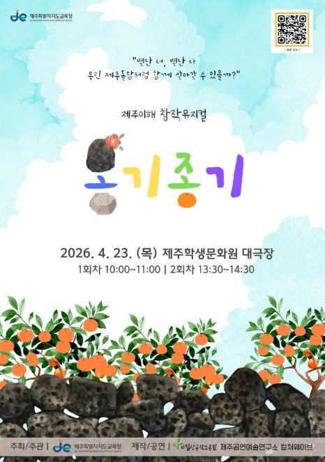 [경남도민뉴스=하형수 기자] 제주특별자치도교육청은 23일 제주학생문화원 대극장에서 제주의 역사와 자연, 사람의 가치를 담아낸 창작뮤지컬 ‘옹기종기’를 무대에 올린다.