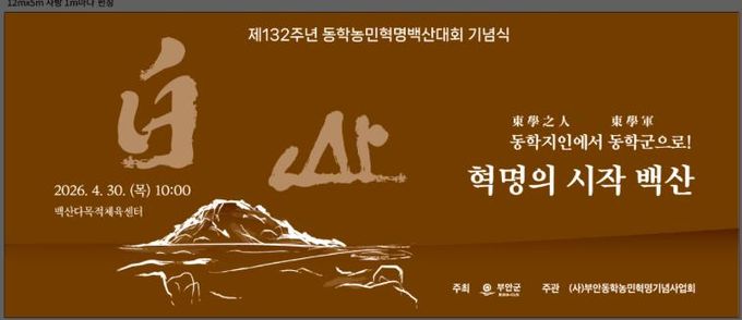 [경남도민뉴스=최인태 기자] 부안군은 오는 30일 부안 백산성지 및 백산다목적체육센터 일원에서 제132주년 부안 동학농민혁명 백산대회 기념행사를 개최한다고 밝혔다.