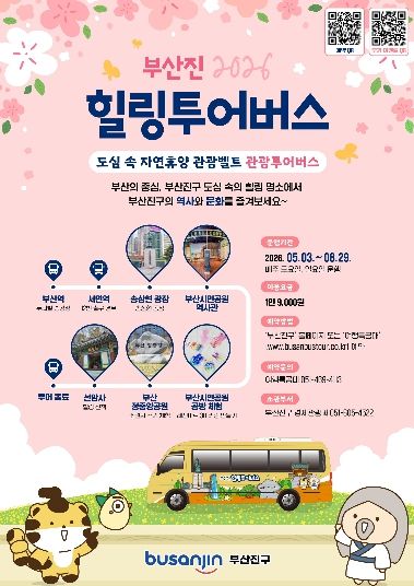[경남도민뉴스=신석주 기자] 부산진구는 도심 속 자연휴양 관광벨트 사업의 일환으로 부산진구의 주요 관광지와 자연휴양 자원을 연계한 ‘부산진 힐링투어버스’를 5월부터 9월 말까지 운영한다고 밝혔다.