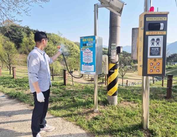 주요 점검 내용은 자동분사기 작동 여부와 분사 압력 확인, 태양광 패널 및 배터리 충전 효율 점검 등이다. 점검 결과, 기피제가 부족한 5개소는 현장에서 즉시 약품을 보충했으며, 기기 외관 청소와 주변 장애물 제거를 병행해 이용 편의를 높였다.