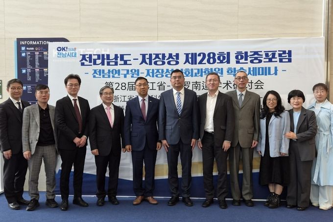 전라남도와 전남연구원은 에너지 전환 전략과 2050 탄소중립 기술개발 방향, 지역 AI 인프라를 활용한 성장 전략 등을 제시했으며 중국 저장성과 저장성사회과학원은 인공지능 정책, 산업의 녹색 전환, 저탄소 도시와 미래 커뮤니티 조성 사례 등을 소개했다.