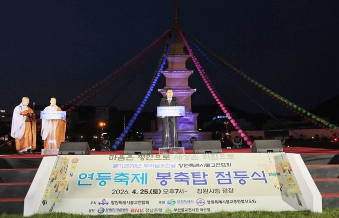 [경남도민뉴스=박민호 기자] 창원특례시는 다가오는 불기 2570년 부처님 오신 날을 맞이하여, 지난 25일 창원시청 광장에서 ‘봉축 점등식’을 성황리에 개최했다고 밝혔다.