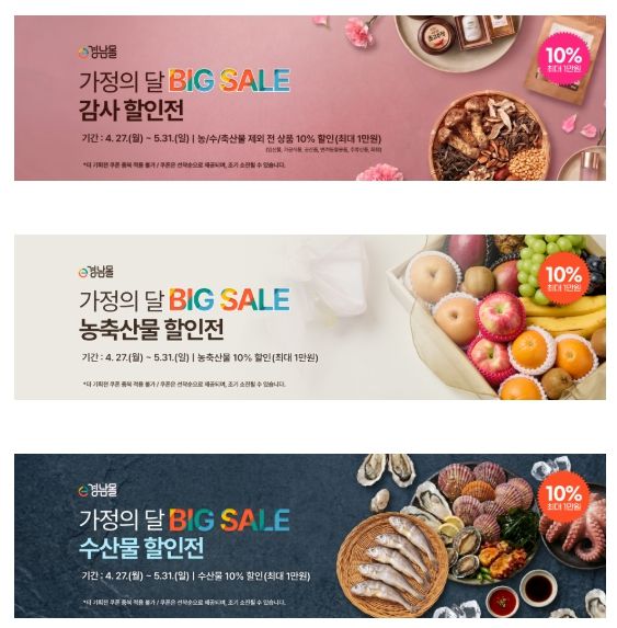 더불어 같은 기간 ‘경남 멍게 대축제’, ‘하동 쌀 기획전’, ‘통영 동행 특가 할인전’도 별도로 진행하고 있어 5월 가정의 달 기획전과 함께 소비자들에게 다양한 선택폭을 제공한다.