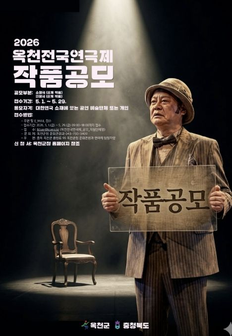 군 관계자는 “지난해 제2회 연극제에는 전국 58개 극단이 참여해 11대 1의 경쟁률을 기록하는 등 옥천이 연극의 새로운 중심지로 주목받고 있다”며 “올해는 ‘연극산책’이라는 테마에 맞춰 관객과 더욱 가까이 호흡하는 수준 높은 공연을 선보일 예정인 만큼, 역량 있는 예술인들의 많은 참여를 기대한다”고 말했다.