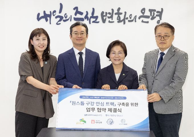 [경남도민뉴스=윤장희 기자] 서울 은평구는 지난 23일 서북병원, 은평구치과의사회, ㈜센트디아와 함께 의료취약계층을 위한 ‘원스톱 구강 안심 트랙 구축’ 업무협약을 체결했다고 밝혔다.