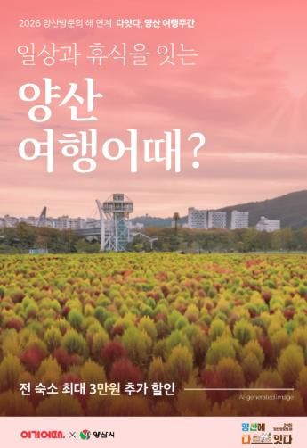 [경남도민뉴스=최미정 기자] 양산시는 ‘2026 양산방문의 해’를 맞아 당일형 관광에 치중된 여행 패턴을 관내에서 하룻밤 머무는 ‘체류형 관광’으로 전환하면서 지역 관광 산업에 활력을 불어넣기 위해 추진한 숙박 할인 프로모션 ‘다잇다, 양산 여행주간’이 관광객들의 높은 이용률 속에 개시 일주일 만에 종료됐다고 밝혔다.