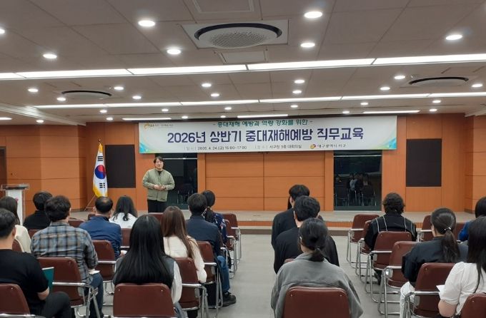[경남도민뉴스=백상현 기자] 대구 서구청은 지난 24일 서구청 대회의실에서 구청 직원 및 도급 사업(발주 공사 포함) 업체를 대상으로 '2026년 상반기 중대재해예방 직무교육'을 실시했다.