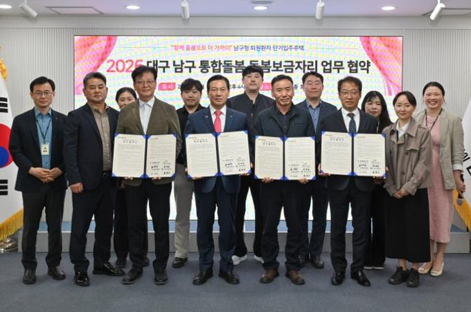 [경남도민뉴스=백상현 기자] 대구 남구는 지난 24일 지역사회 통합돌봄 활성화를 위한 『돌봄보금자리』 운영을 위해 LH대구북부권주거복지지사와 남구종합사회복지관 및 대명사회복지관과 업무협약을 체결했다고 밝혔다.