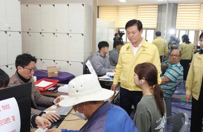 이날 이학수 시장과 관계 공무원들은 인구가 많은 수성동과 내장상동 행정복지센터를 차례로 방문해 신청과 접수 현장을 직접 점검했다.