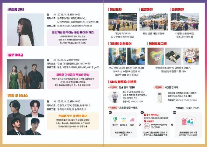 [경남도민뉴스=김부경 기자] 통영시는 오는 5월 2일 강구안 해상무대 및 일원에서 '2026 강구안 나이트 프린지, ‘투나잇 통영 즐거울 樂’'두 번째 공연을 개최한다.