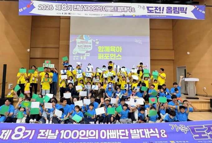 [경남도민뉴스=최인태 기자] 전라남도는 최근 화순 어울림센터체육관에서 ‘2026년 제8기 전남 100인의 아빠단 발대식 및 도전! 가족올림픽’을 열고, 아빠의 육아 참여 확대와 함께하는 돌봄 문화 확산을 다짐했다.