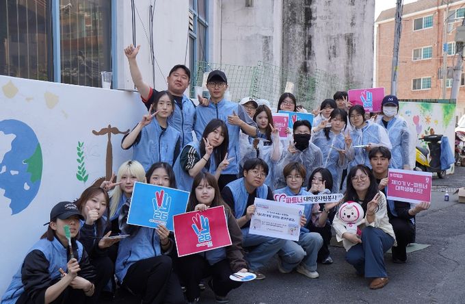 ‘V-road(자원봉사 벽화길)’는 담장과 골목 등 낙후된 생활공간에 자원봉사 정신을 담은 벽화를 조성해 안전한 환경을 만드는 사업이다. 이번 사업은 대구시자원봉사센터 인근 학교 앞 낡고 좁은 골목길을 대상으로 추진됐다.