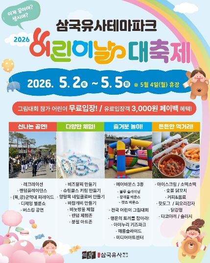 [경남도민뉴스=오창경 기자] 군위문화관광재단이 다가오는‘2026 어린이날 대축제’를 더욱 알차게 즐길 수 있는 상세 일정과 장소별 프로그램을 전격 공개했다.