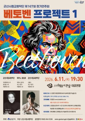 [경남도민뉴스=최인태 기자] 군산시립교향악단이 오는 6월 11일 오후 7시 30분, 군산예술의전당 대공연장에서 제167회 정기연주회 ‘베토벤 프로젝트 I’를 개최한다.