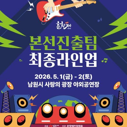 남원시 관계자는 “전국의 실력파 밴드들이 모여 축제장을 뜨겁게 달굴 것으로 기대한다”며, “본선 경연과 축하공연은 누구나 무료로 관람할 수 있는 만큼 많은 시민과 관광객들이 함께하며 즐거운 추억을 만드시길 바란다“고 전했다.