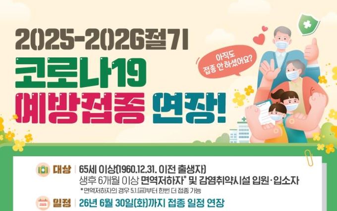[경남도민뉴스=최인태 기자] 남원시보건소는 여름철 코로나19 재확산에 대응하기 위해 ‘2025-2026절기 코로나19 예방접종’ 기간을 당초 4월 30일에서 6월 30일까지 두 달간 연장한다고 밝혔다.