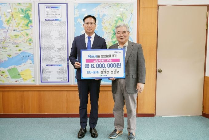 [경남도민뉴스=최인태 기자] 목포시는 지난 27일 만전식품 정재강 회장이 시를 방문해 고향사랑기부금 600만 원을 기탁했다고 밝혔다.
