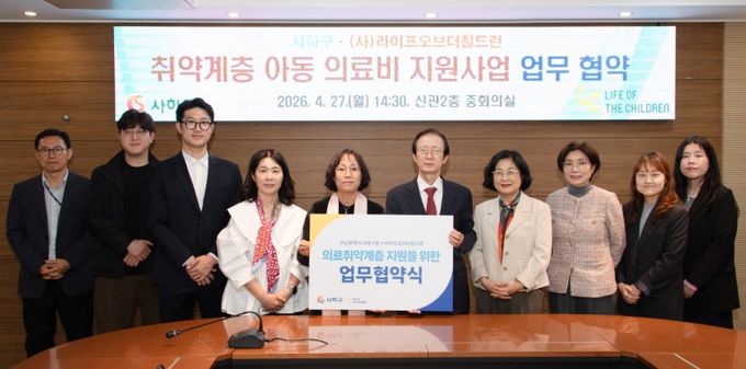 [경남도민뉴스=김채연 기자] 부산 사하구는 지난 27일 사단법인 라이프오브더칠드런과 ‘취약계층 아동 의료비 지원사업’ 업무협약을 체결했다.