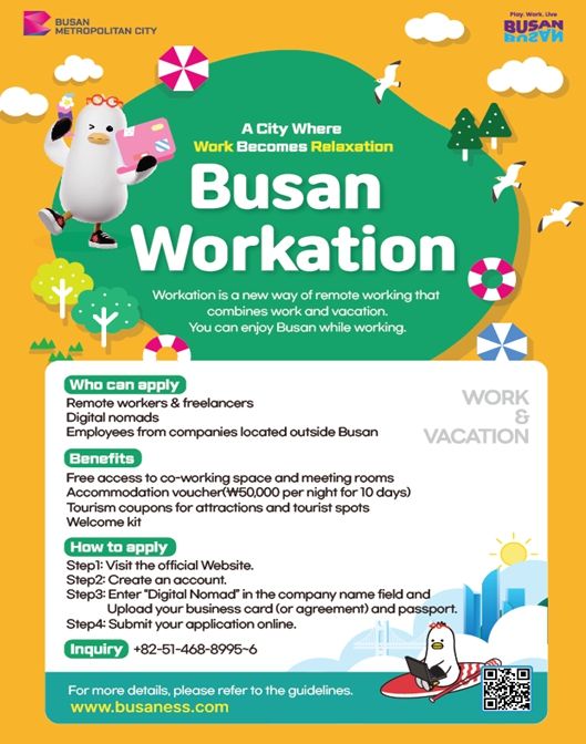 [경남도민뉴스=신석주 기자] 부산시는 글로벌 온라인 여행 플랫폼(OTA)인 아고다(Agoda)와 협력하여 부산을 찾는 휴가지 원격근무(워케이션) 외국인 참여자를 위한 '부산형 워케이션 글로벌 프로모션'을 추진한다고 밝혔다.