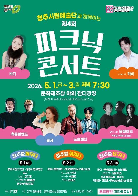 신병대 청주시장 권한대행은 “가정의 달 5월을 맞아 가족이 함께 즐길 수 있는 공연과 체험, 축제를 곳곳에 준비했다”며 “시민들이 가까운 곳에서 특별한 추억을 만들고 청주의 다양한 매력을 느끼는 시간이 되길 바란다”고 말했다.