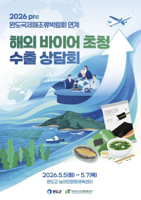 [경남도민뉴스=최인태 기자] 완도군이 ‘2026 Pre 완도국제해조류박람회’ 기간 중 해외 바이어 초청 수출 상담회를 연다.