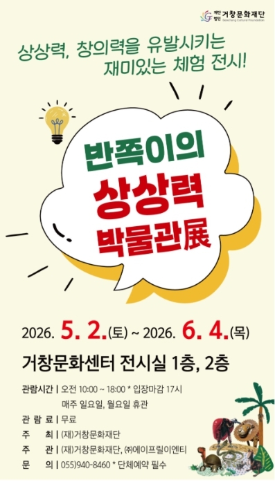 [경남도민뉴스=백형찬 기자] (재)거창문화재단은 가정의 달을 맞이해 오는 5월 2일부터 6월 4일까지 거창문화센터 전시실에서 2026년 기획전시 '반쪽이의 상상력 박물관展'을 개최한다.