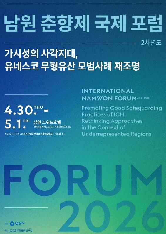 한편, 이번 포럼은 남원시가 주최하고, CICS 무형문화연구원이 주관했다.